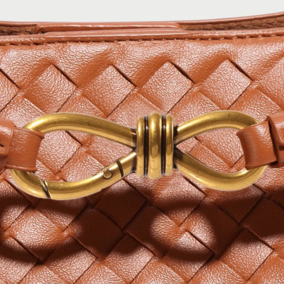 The Eclipse- Woven Bag blends timeless elegance with a modern boho edge. Crafted in premium PU with an intricate handwoven texture, it features braided handles and a statement gold knot detail that adds a touch of artistry. Spacious yet sophisticated, this versatile bag transitions seamlessly from city days to evening outings. A true essential for the free-spirited woman who loves chic practicality with a hint of bold charm.